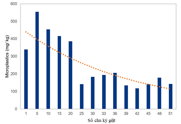 Hình 3 – Microplastic giải phóng ra từ vải polyeste dệt thoi sau vài chu kỳ giặt và làm khô