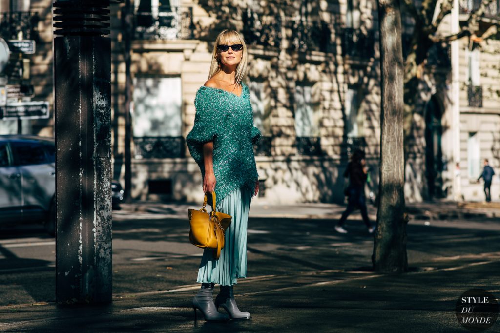 Các cô nàng có thể kết hợp chân váy xanh cobalt, áo xanh baby cùng giày cao gót navy và phụ kiện túi xách xanh da trời. (Ảnh: Who What Wear)