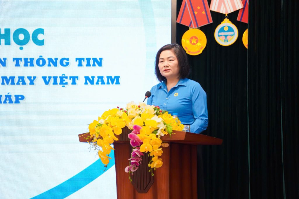 “Xuất phát từ nhận thức đó, Hội thảo khoa học “Tăng cường năng lực tiếp cận thông tin của người lao động Dệt May Việt Nam – Thực trạng và giải pháp” được tổ chức không chỉ như một hoạt động mang tính lý luận thuần túy, mà còn là một diễn đàn đối thoại thực chất – nơi quy tụ trí tuệ học thuật, kinh nghiệm thực tiễn và trách nhiệm xã hội từ các bên liên quan để cùng nhau trao đổi, đưa ra các đề xuất và thúc đẩy các giải pháp khả thi, phù hợp với điều kiện thực tiễn ngành Dệt May Việt Nam hiện nay. Với 3 mục tiêu chính: (1) Nhận diện toàn diện thực trạng tiếp cận thông tin của người lao động ngành Dệt May, từ hành vi, thói quen, đến các rào cản cụ thể; (2) Đánh giá sâu sắc những hệ lụy từ việc thiếu minh bạch thông tin đối với quan hệ lao động, sức khỏe tâm lý, hiệu quả sản xuất và sự phát triển cá nhân của người lao động; (3) Đề xuất các giải pháp đột phá, thực tiễn và có thể triển khai ngay, trên cơ sở đổi mới hoạt động công đoàn, ứng dụng công nghệ truyền thông, phát huy vai trò doanh nghiệp và hoàn thiện thể chế chính sách” – Đ/c Chủ tịch Công đoàn DMVN nhấn mạnh.