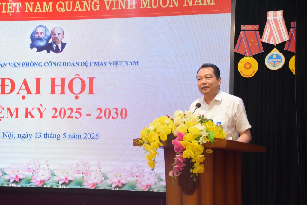 Phát biểu chỉ đạo tại Đại hội, đồng chí Nguyễn Song Hải – Phó Bí thư Thường trực Đảng ủy Tập đoàn Dệt May Việt Nam ghi nhận và biểu dương những nỗ lực và kết quả tích cực mà Chi bộ Cơ quan Văn phòng Công đoàn Dệt May Việt Nam đạt được trong nhiệm kỳ trước. Đồng chí nhấn mạnh hai nội dung quan trọng mà Chi bộ cần quan tâm trong thời gian tới. Thứ nhất, công tác tinh gọn bộ máy đã, đang và sẽ ảnh hưởng đến đội ngũ cán bộ Công đoàn, do đó Chi bộ cần chủ động nắm bắt thông tin và có giải pháp phù hợp nhằm giữ vững thần cho cán bộ, ổn định tổ chức để đạt được các mục tiêu đề ra. Thứ hai, trước yêu cầu ngày càng cao trong bối cảnh mới, Công đoàn Dệt May Việt Nam cần chú trọng hơn nữa tới công tác đào tạo, nâng cao trình độ, kỹ năng tay nghề cho người lao động, từ đó góp phần nâng cao năng lực lao động và năng lực cạnh tranh của doanh nghiệp.