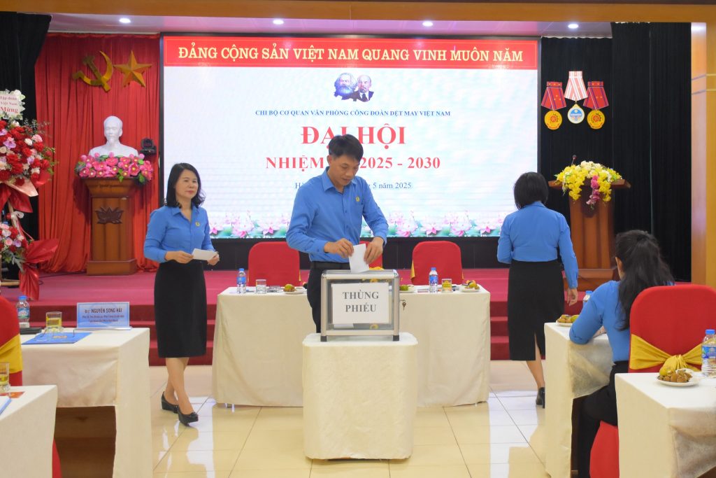 Trong nhiệm kỳ 2025 – 2030 tới, Chi bộ Cơ quan Văn phòng Công đoàn Dệt May Việt Nam đề ra các chỉ tiêu: Chi bộ đạt hoàn thành tốt nhiệm vụ trở lên hàng năm; 80% Đảng viên hoàn thành tốt nhiệm vụ trở lên, đảng viên hoàn thành xuất sắc nhiệm vụ đạt 20%; kết nạp mới 01 Đảng viên (nếu còn nguồn); triển khai nghị quyết của Đảng đến 100% Đảng viên của chi bộ; kiểm tra/giám sát chuyên đề đối với mỗi đảng viên 1 lần/1 nhiệm kỳ. Cả nhiệm kỳ kết nạp 24.600 đoàn viên; giới thiệu 800 đoàn viên công đoàn (160 đoàn viên/năm) vào Đảng; tổ chức hoạt động Tháng Công nhân ở 100% CĐCS; thu tài chính công đoàn đạt 100% số phải thu; hàng năm, ít nhất 80% CĐCS khu vực nhà nước và 65% CĐCS ngoài khu vực nhà nước xếp loại hoàn thành tốt nhiệm vụ; 100% cán bộ chuyên trách được bồi dưỡng, tập huấn; hàng năm kiểm tra đồng cấp về tài chính, kiểm tra tài chính CĐCS đạt 15%.