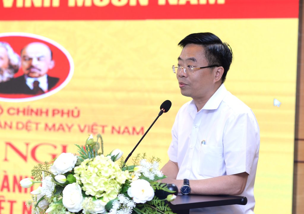 Đồng chí Lê Tiến Trường – Ủy viên Ban Chấp hành Đảng bộ Chính phủ, Bí thư Đảng ủy, Chủ tịch HĐQT Vinatex phát biểu tại Hội nghị