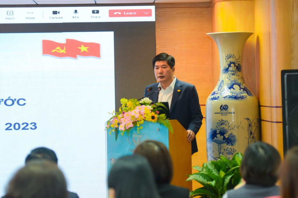 Đồng chí Cao Hữu Hiếu – Phó Bí thư Đảng ủy, Thành viên HĐQT, Tổng Giám đốc Vinatex báo cáo kết quả công tác xây dựng Đảng năm 2023, phương hướng nhiệm vụ trọng tâm năm 2024