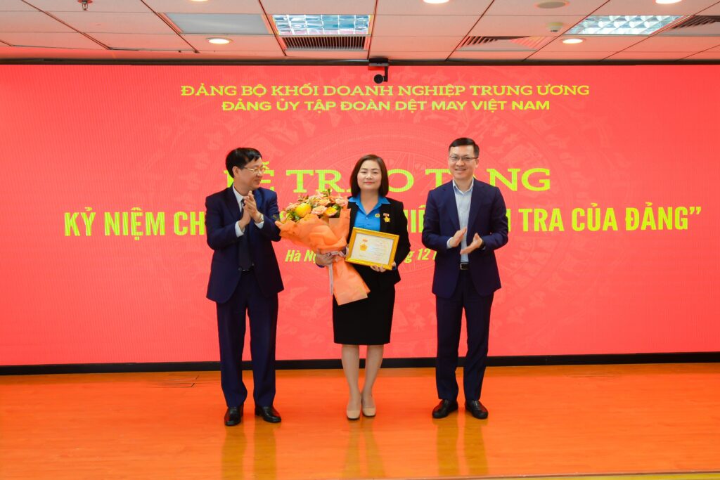 Để ghi nhận thành tích đóng góp của cán bộ đảng viên đối với công tác kiểm tra của Đảng thuộc Đảng bộ Khối DNTW, Ủy Ban Kiểm tra Trung ương quyết định trao tặng Kỷ niệm chương “Vì sự nghiệp kiểm tra của Đảng” cho đồng chí Phạm Thị Thanh Tâm – Ủy viên Ban Thường vụ, Chủ nhiệm Ủy ban Kiểm tra Đảng ủy Tập đoàn Dệt May Việt Nam.
