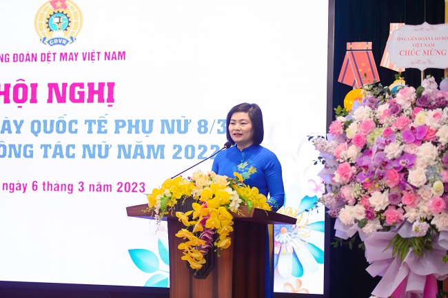 - Tiếp tục nâng cao hơn nữa nhận thức, thực hiện chủ trương của Đảng trong Nghị quyết Đại hội XIII: “Xây dựng người phụ nữ Việt Nam thời đại mới. Nâng cao chất lượng nguồn nhân lực nữ, đáp ứng yêu cầu phát triển bền vững và hội nhập quốc tế”, góp phần đạt được các mục tiêu phát triển của ngành dệt may Việt Nam nói chung, Tập đoàn Dệt May Việt Nam nói riêng. Chú trọng hơn nữa công tác quy hoạch nguồn cán bộ nữ làm công tác lãnh đạo, quản lý. Mặt khác, đa số lao động ngành dệt may là lao động trẻ, trình độ chưa cao, vì vậy rất cần các khoá đào tạo ngắn hạn, giúp chị em hoà nhập với môi trường sản xuất hiện đại; đào tạo cập nhật thường xuyên để chị em có thể tiếp cận với công nghệ mới, đặc biệt trong thời đại cách mạng công nghiệp hiện nay.