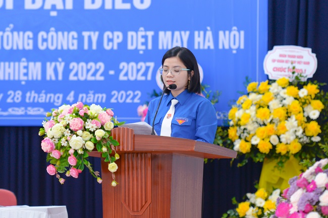 Đ/c Phạm Thị Thu Hà Bí thư Đoàn TN Hanosimex khóa XIII thông qua chương trình Đại hội