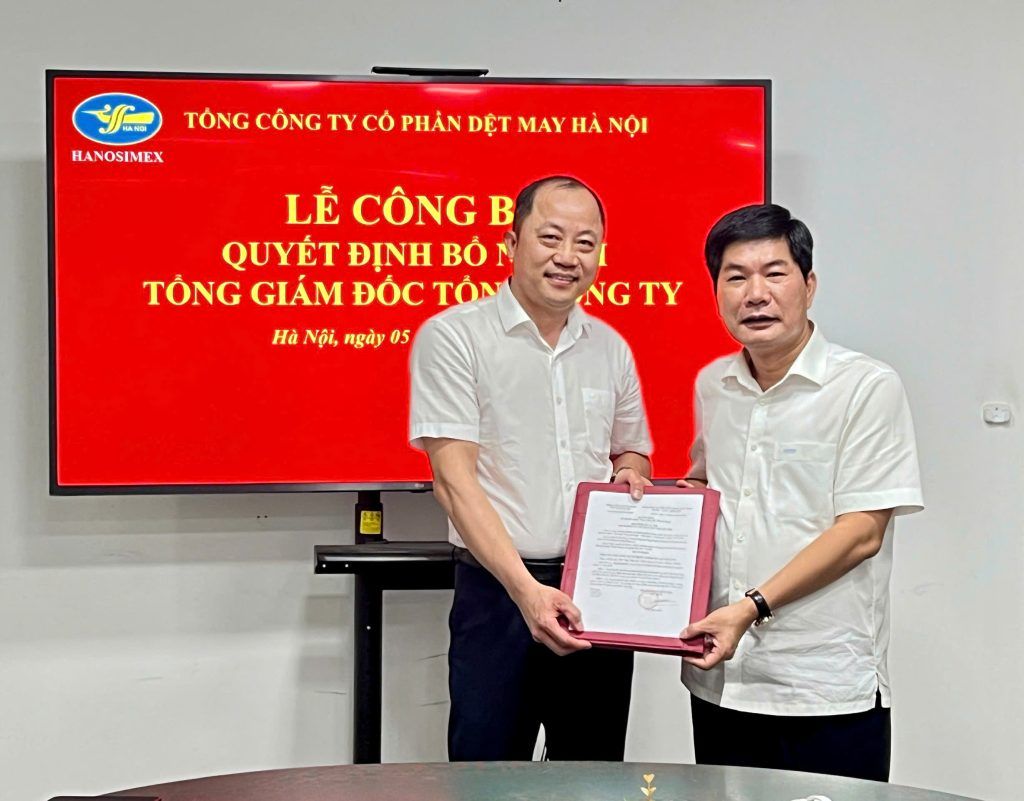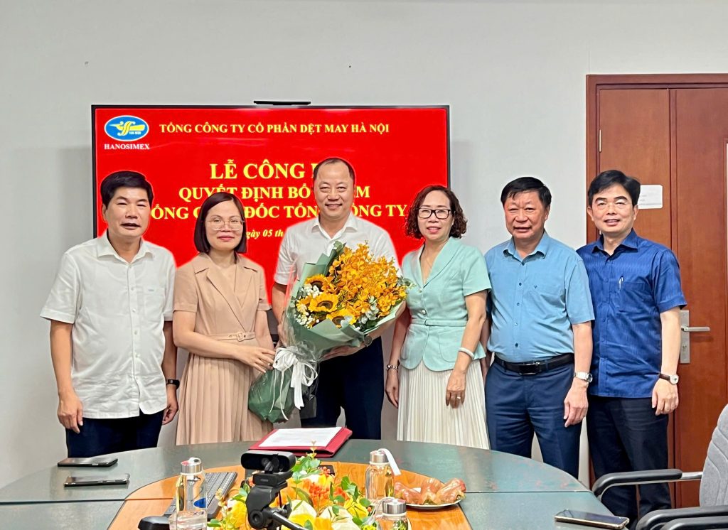 Sáng 5/5, đồng chí Cao Hữu Hiếu – Phó Bí thư Đảng ủy, Tổng Giám đốc Tập đoàn Dệt May Việt Nam, Chủ tịch HĐQT Tổng Công ty CP Dệt May Hà Nội trao quyết định bổ nhiệm đồng chí Nguyễn Trí Sơn giữ chức vụ Tổng Giám đốc Tổng Công ty CP Dệt May Hà Nội (Hanosimex).