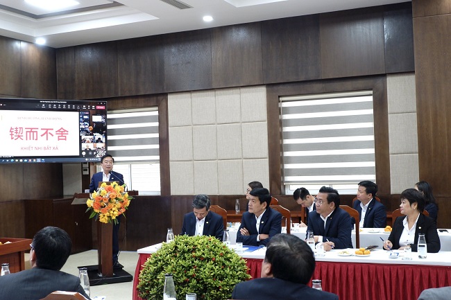 Nhân dịp này, Chủ tịch HĐQT Vinatex Lê Tiến Trường đã chúc Tổng Công ty Cổ phần Dệt May Hòa Thọ cũng như các đơn vị trong khu vực Đà Nẵng năm mới với quyết tâm cao, hoàn thành kế hoạch SXKD. Đồng thời, với Hòa Thọ, Chủ tịch Vinatex dành riêng một câu ngạn ngữ về định hướng hành động là “Khiết Nhi Bất Xả” (có nghĩa là: Kiên trì làm đến cùng, quyết không từ bỏ).