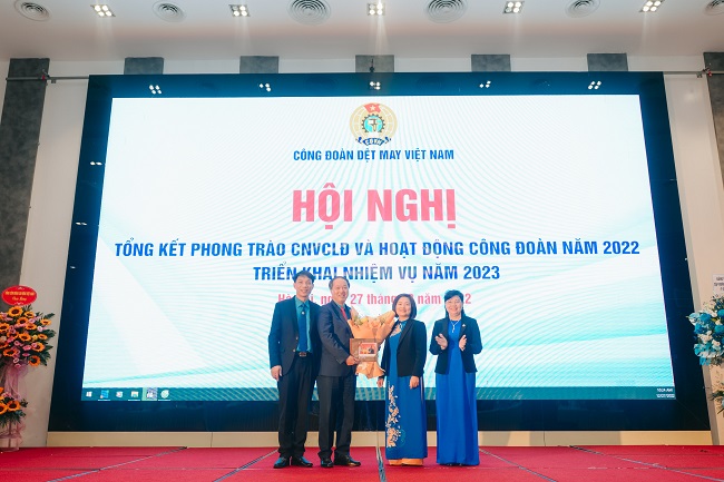 Năm 2022, thị trường xảy ra biến động hết sức đặc biệt với 6 tháng đầu năm tăng trưởng nóng, 6 tháng cuối năm thì đảo chiều với đơn hàng không đầy tải, nhưng trên hết toàn hệ thống các đơn vị trực thuộc Công đoàn Dệt May Việt Nam vẫn đảm bảo việc làm, thực hiện tốt chính sách an sinh cho gần 500 nghìn lao động của toàn hệ thống, đây là sự hãnh diện, nỗ lực rất đáng ghi nhận của toàn bộ hệ thống Công đoàn DMVN và những cán bộ làm công tác Công đoàn.