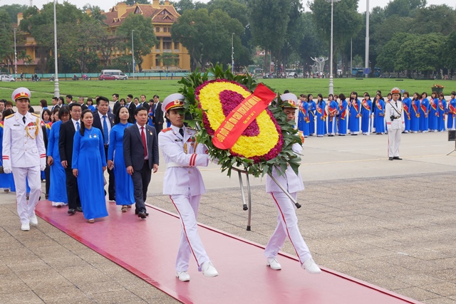 Đoàn đã đến Lăng Chủ tịch Hồ Chí Minh viếng Bác kính yêu, thăm nhà sàn, đi trên con đường xoài, viếng Bác tại ngôi nhà 67 và gặp gỡ giao lưu với Ban Quản lý di tích Hồ Chủ tịch. Tại ngôi nhà 67, CBCNV tiêu biểu được các chị hướng dẫn viên giới thiệu về ngôi nhà, về những ngày Bác ở tại đây và trân trọng dành phút mặc niệm Bác Hồ kính yêu.