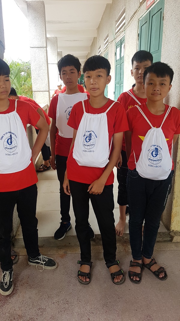 Học trò trường THCS Ninh Sơn (Ninh Bình) nhận quà tặng từ May Ninh Bình