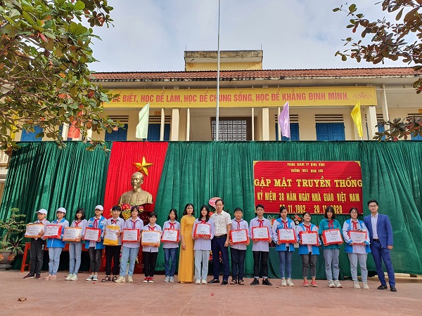 Học sinh Trường THCS Ninh Tiến (Ninh Bình) nhận quà tặng từ May Ninh Bình