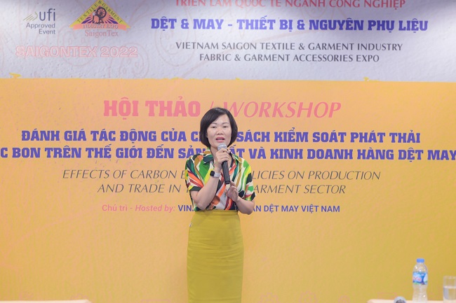 Trong khuôn khổ triển lãm quốc tế ngành công nghiệp Dệt May- Thiết bị & Nguyên phụ liệu 2022, chiều 27/7 tại SECC Tp HCM, Tập đoàn Dệt May Việt Nam đã tổ chức hội thảo: “Đánh giá tác động của Chính sách kiểm soát phát thải khí Carbon trên thế giới đến sản xuất và kinh doanh hàng dệt may”.