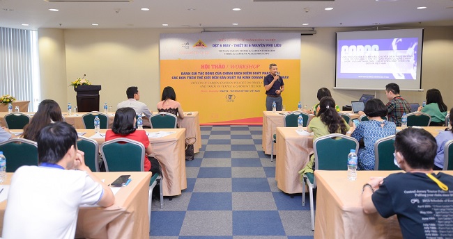 Tại Hội thảo, đại biểu được nghe các diễn giả đến từ Bộ Công thương và Tập đoàn Dệt May Việt Nam trình bày các nội dung về chính sách của Việt Nam liên quan đến tăng trưởng xanh, kinh tế tuần hoàn và giảm phát thải khí các-bon; Chính sách của EU, Mỹ và một số quốc gia khác đối với việc giảm phát thải các-bon liên quan đến hàng dệt may; Hướng dẫn tính toán kiểm kê khí nhà kính đối với hàng dệt may…