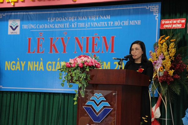 Báo cáo tại buổi lễ, cô Phan Thị Hải Vân– Phó Hiệu trưởng Trường Cao đẳng Kinh tế – Kỹ thuật Vinatex TP. HCM cho biết, trong những năm qua, nhà trường đã phát huy tinh thần chủ động, tích cực thực hiện các giải pháp nâng cao chất lượng đào tạo; xây dựng đội ngũ nhà giáo và cán bộ quản lý vững mạnh, tăng cường cơ sở vật chất, chương trình đào tạo, nghiên cứu khoa học,… đồng thời đẩy mạnh xã hội hóa các hoạt động giáo dục đào tạo, kết hợp có hiệu quả lao động sản xuất với đào tạo, chú trọng nâng cao đời sống vật chất, tinh thần cho CB-GV-CNV nhà trường.