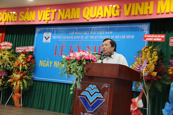 Thay mặt lãnh đạo Tập đoàn Dệt May Việt Nam, ông Lê Trung Hải – Phó Tổng Giám đốc Tập đoàn Dệt May Việt Nam đã tặng hoa, tri ân và chúc mừng BGH Nhà trường cùng các thầy, cô giáo. Ông Lê Trung Hải cho biết, lãnh đạo Tập đoàn đánh giá cao những cống hiến của quý thầy, cô đã góp phần đáng kể vào những thành tích của Tập đoàn trong thời gian qua. Đồng thời ông cũng mong muốn trong thời gian tới nhà trường tiếp tục nỗ lực vượt qua khó khăn, xây dựng nhà trường ngày càng phát triển. Bên cạnh đó, các thầy cô ngoài việc truyền nghề, truyền chữ cho học sinh, phải làm sao truyền được nghị lực, truyền lửa nhiệt tình, đam mê cho các em để đào tạo ra một thế hệ học sinh không chỉ có tay nghề vững vàng, chuyên môn sâu mà còn có cả những nhiệt huyết, đam mê cống hiến cho xã hội, cho đất nước, đặc biệt là cho ngành Dệt May Việt Nam.