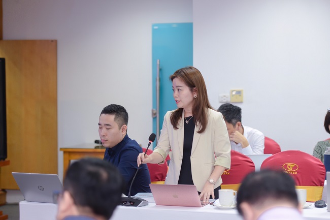 Bà Đặng Thanh Huyền – Phó Chánh Văn phòng HĐQT trình bày báo cáo phát triển bền vững CSRD