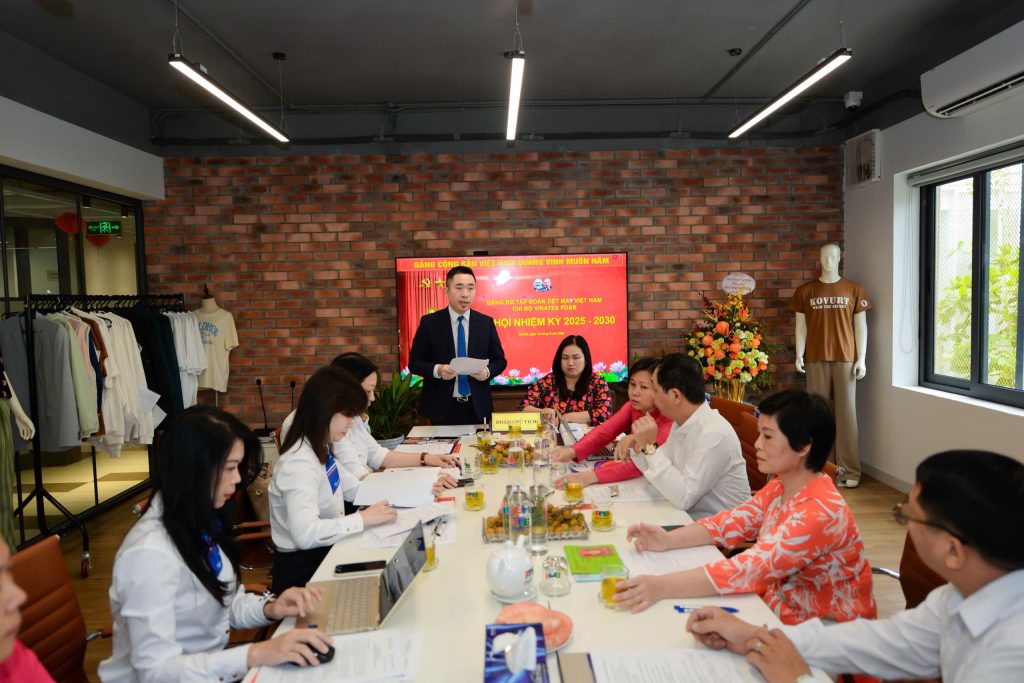 Đồng chí Vương Đức Anh – Bí thư Chi bộ, Giám đốc Vinatex PD&B báo cáo phương hướng, nhiệm vụ nhiệm kỳ 2025 – 2030
